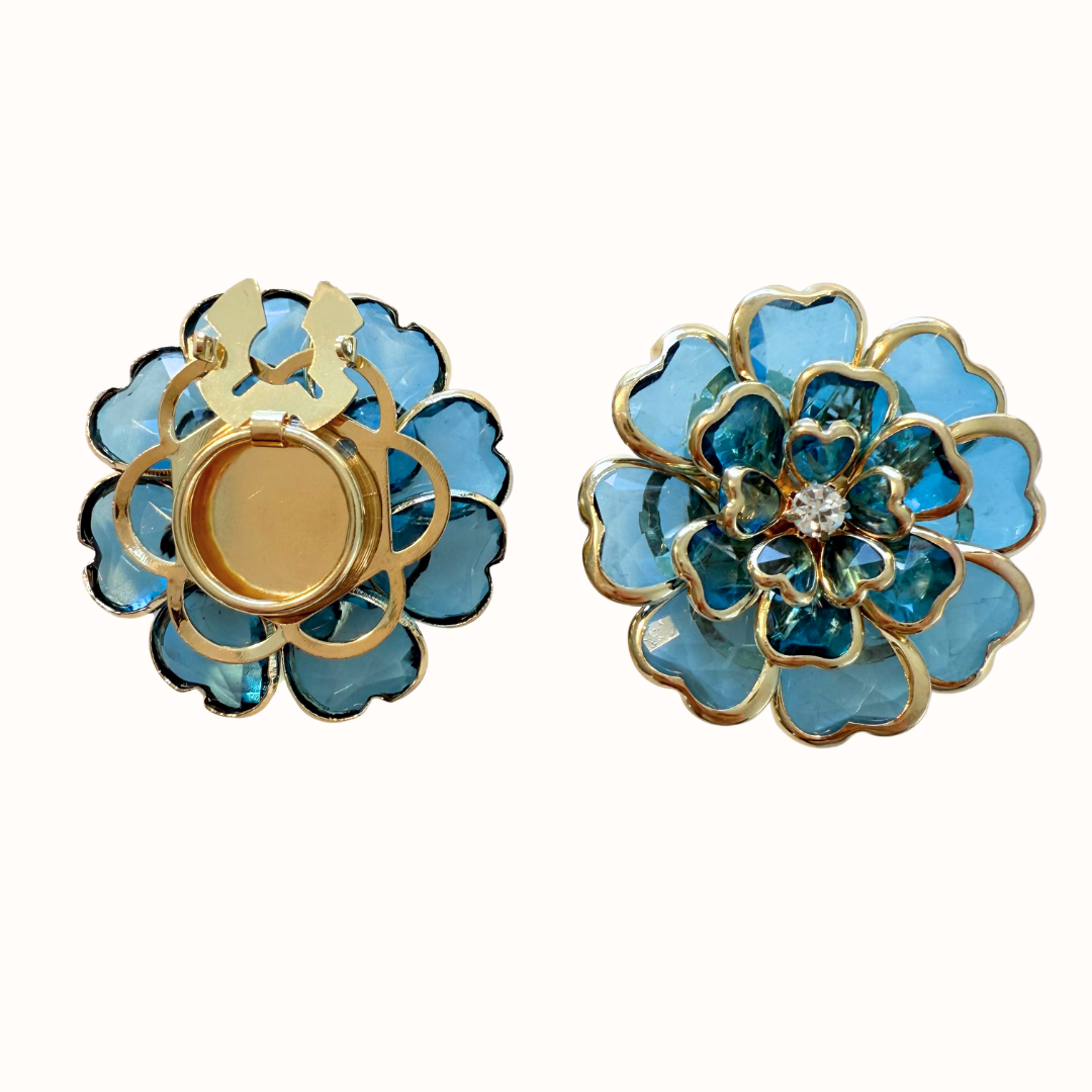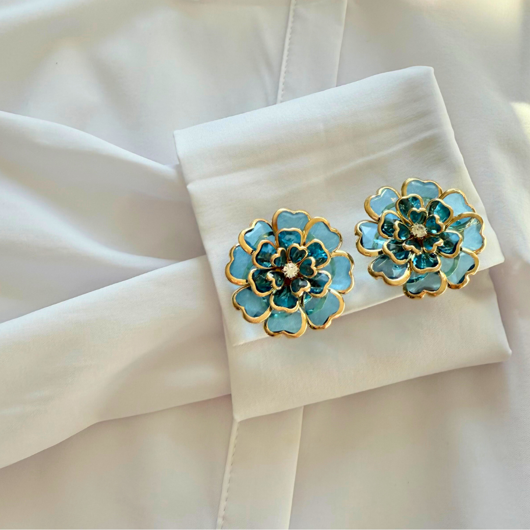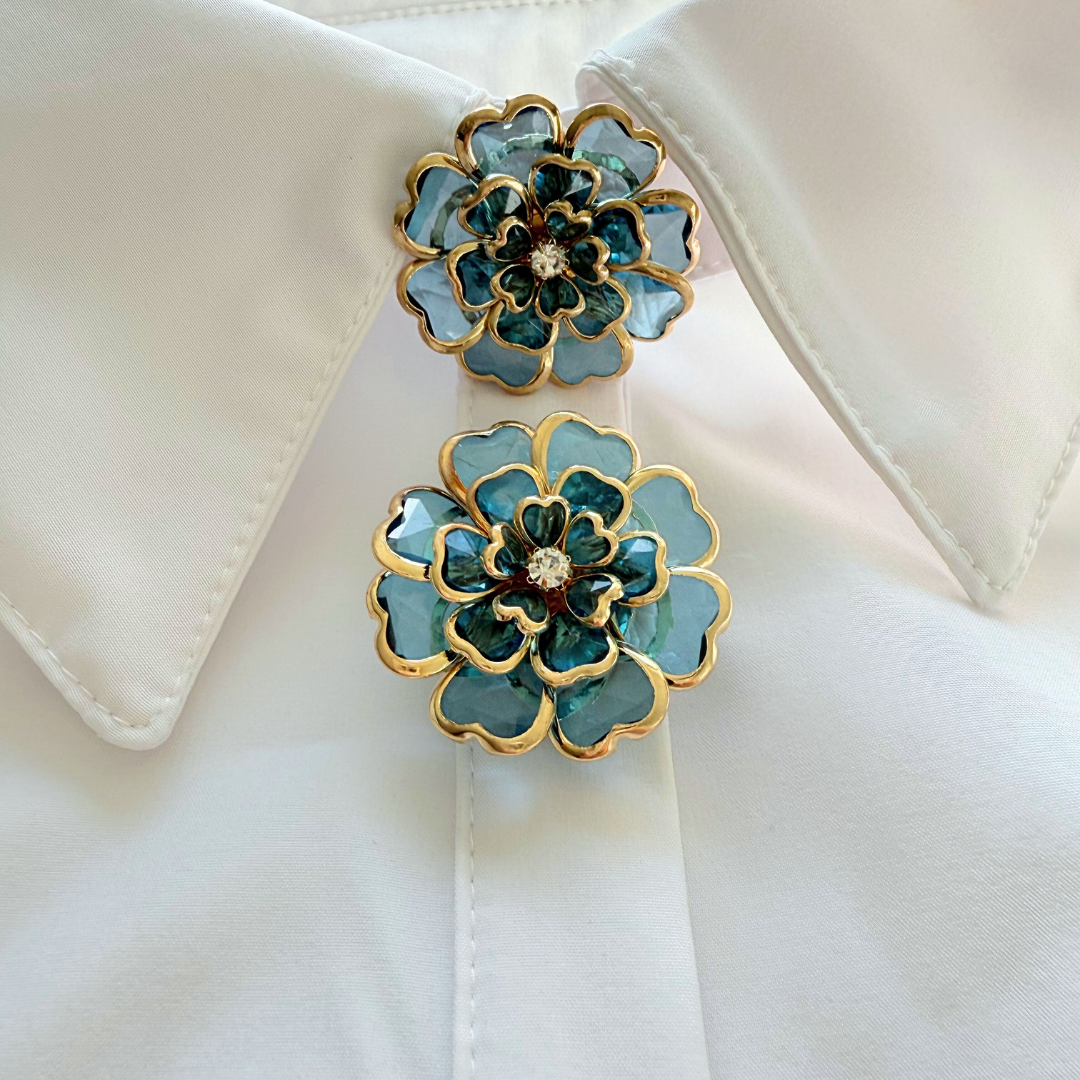 Color: azul y dorado, con un strass blanco en el medio